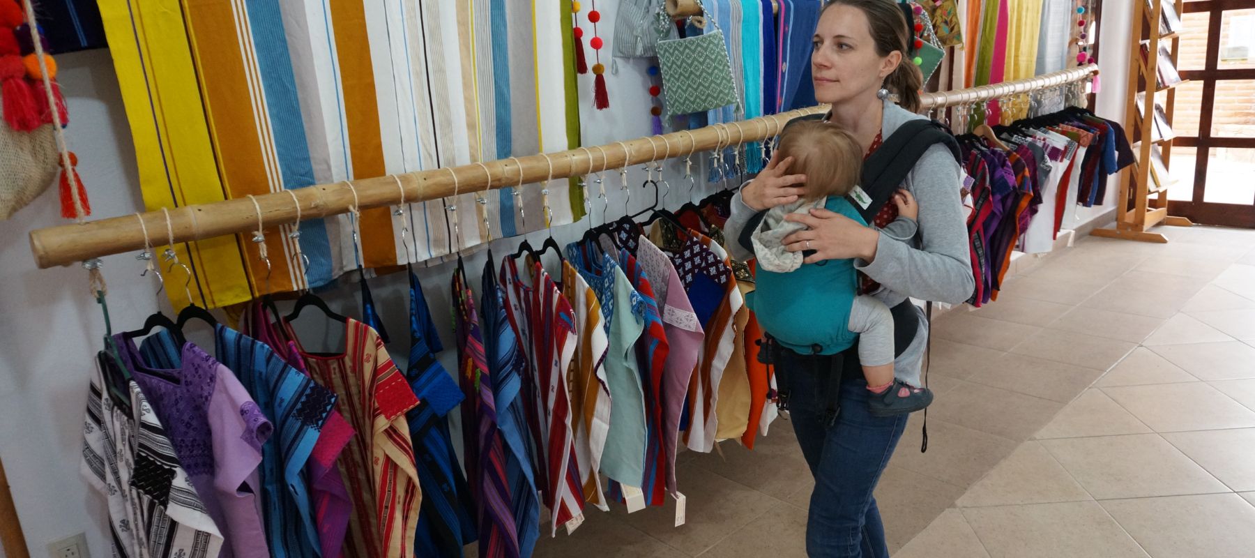 Als wir mit unseren beiden Kindern in der Babytrage durch das Hochland Mexikos reisten, lernten wir indigene Weberinnen kennen, die mittels jahrhundertealter Textiltechniken wunderschöne Stoffe in Handarbeit entstehen lassen.